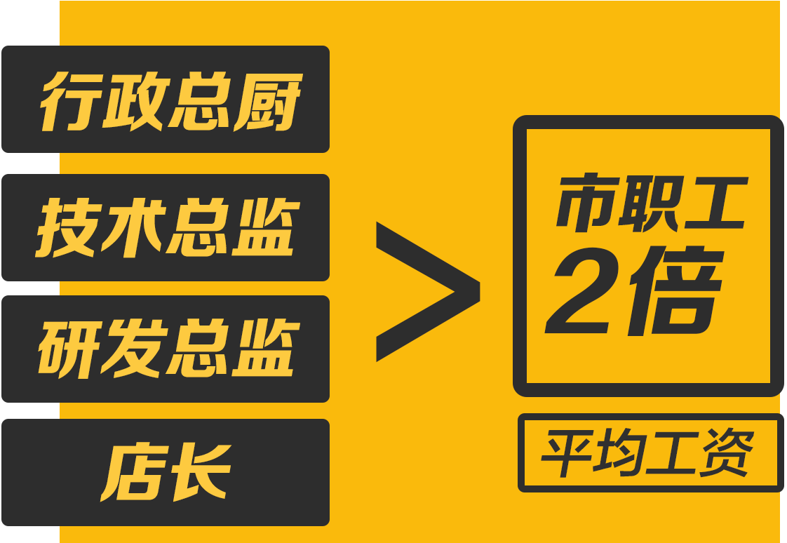 人才供不应求,工资水涨船高,核心技术岗位人员呈“越老越 香”之势;调查显示,2016-2019年上海、北京、广州等城 市烹饪行业平均工资涨幅达到21%以上,工资水平是全市职 工平均工资水平的1.4倍。其中行政总厨、技术总监、研发总 监、店长等核心岗位的平均工资接近市职工平均工资的2倍。
