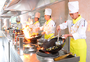 实操理论相结合的教育模式,拥有中餐模拟酒店、西点裱花、蛋糕烘焙、西餐烹调等几十间教室,满足学生学习需求!